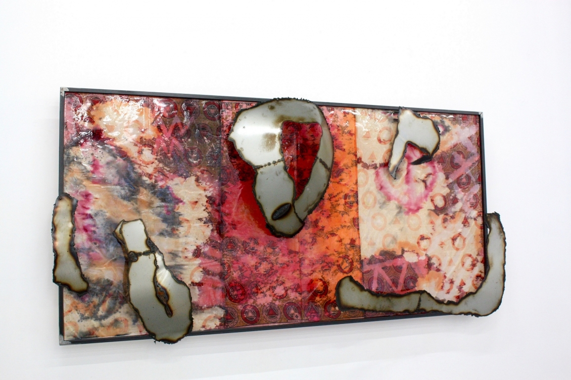 Son premier solo show « Nana Benz » à Diagonales 61 s’articule autour de ce surnom donné aux femmes togolaises qui ont dominé le commerce de la mode et du tissu en Afrique de l’Ouest. Cette exposition préfigure sa fascination pour la migration des formes et des motifs à travers notamment les wax colorés, qu’elle altère, efface et révèle dans ces sculptures.
