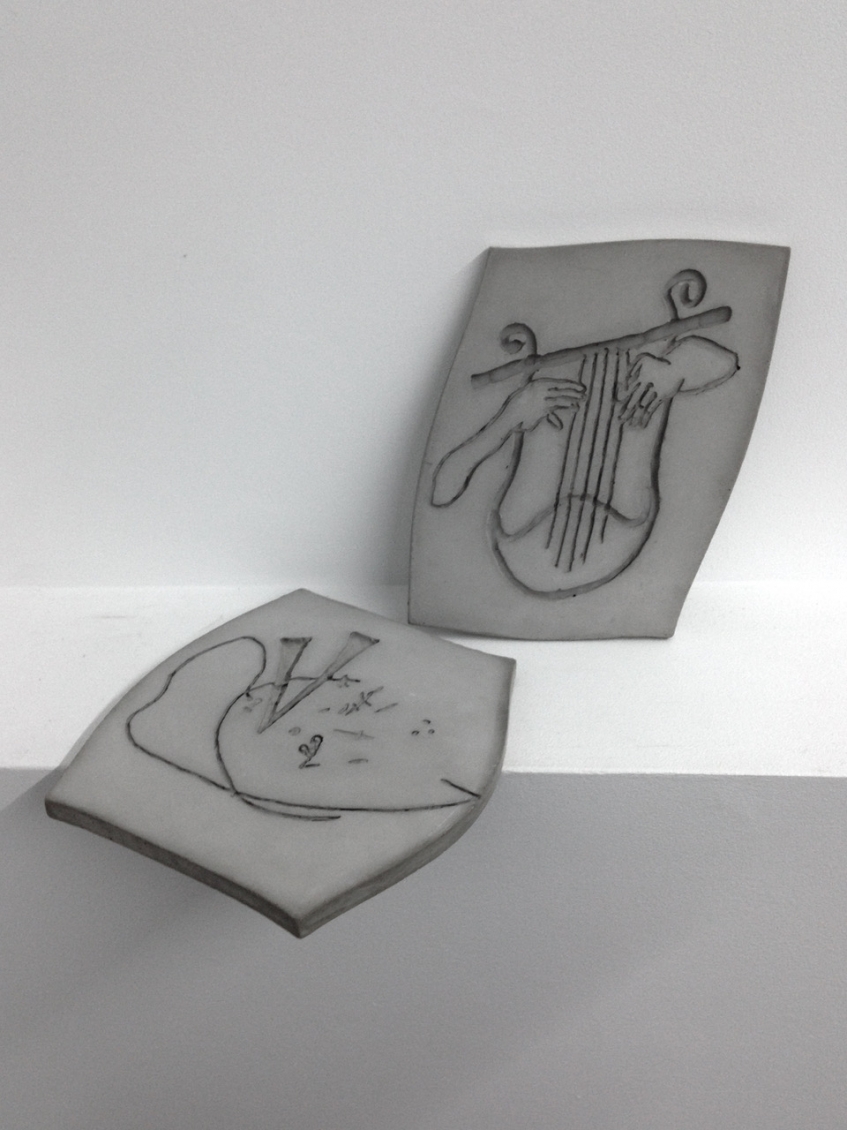 Suite à son arrivée à Paris, François-Xavier initie la mise en volume de ses images grâce à la technique du moulage avec laquelle il crée de nouvelles formes et assemblages en ciment, gravées de dessins, incrustées de petits objets et colorées ou peints. Sa production évolue ainsi vers des formes à la fois plus sculpturales et picturales.
