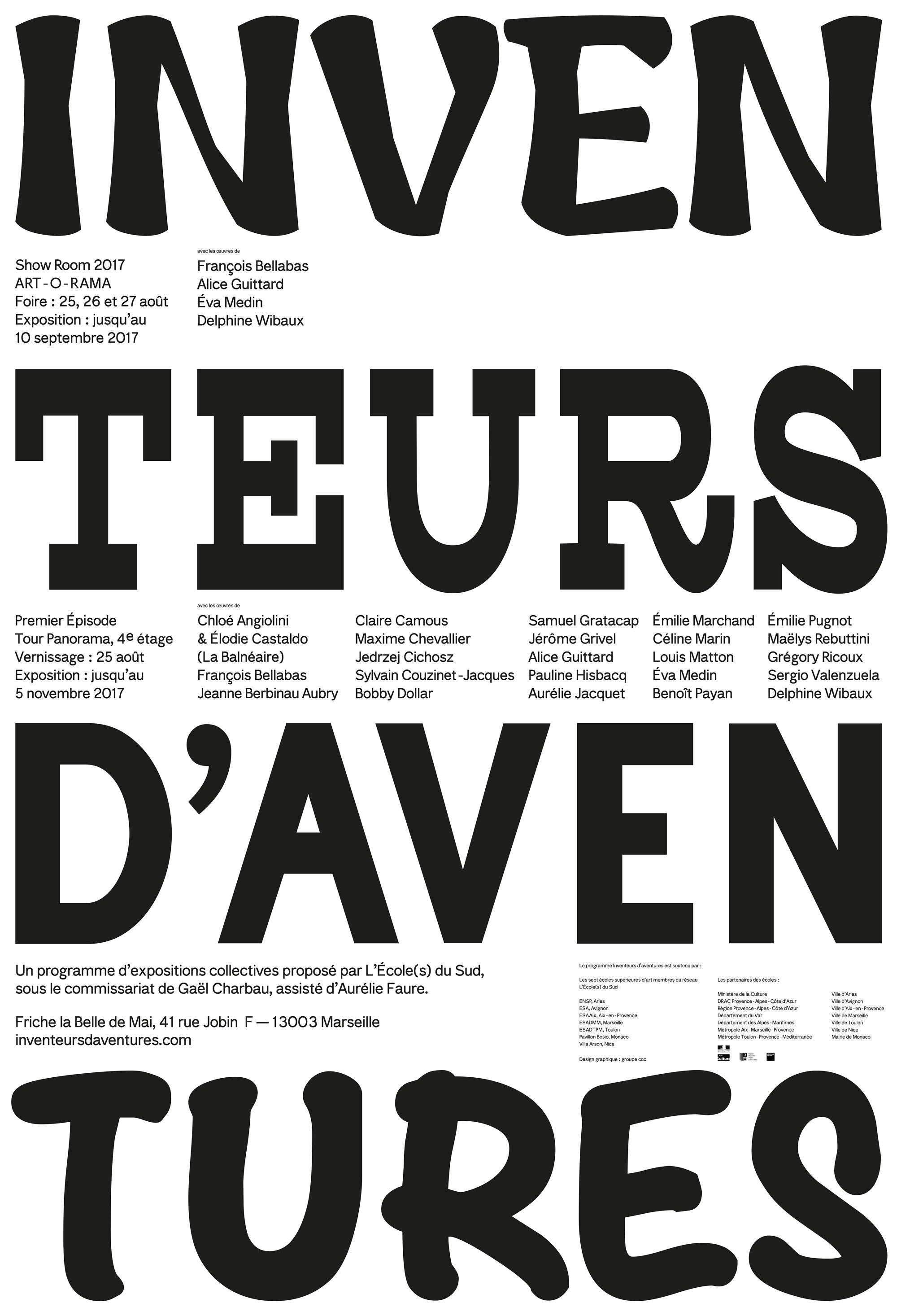 L'Ecole(s) du Sud, le réseau des écoles supérieures d'art de la Région PACA et de Monaco propose Inventeurs d'Aventures, d’Août 2017 à mars 2018, sous le commissariat de Gaël Charbau.