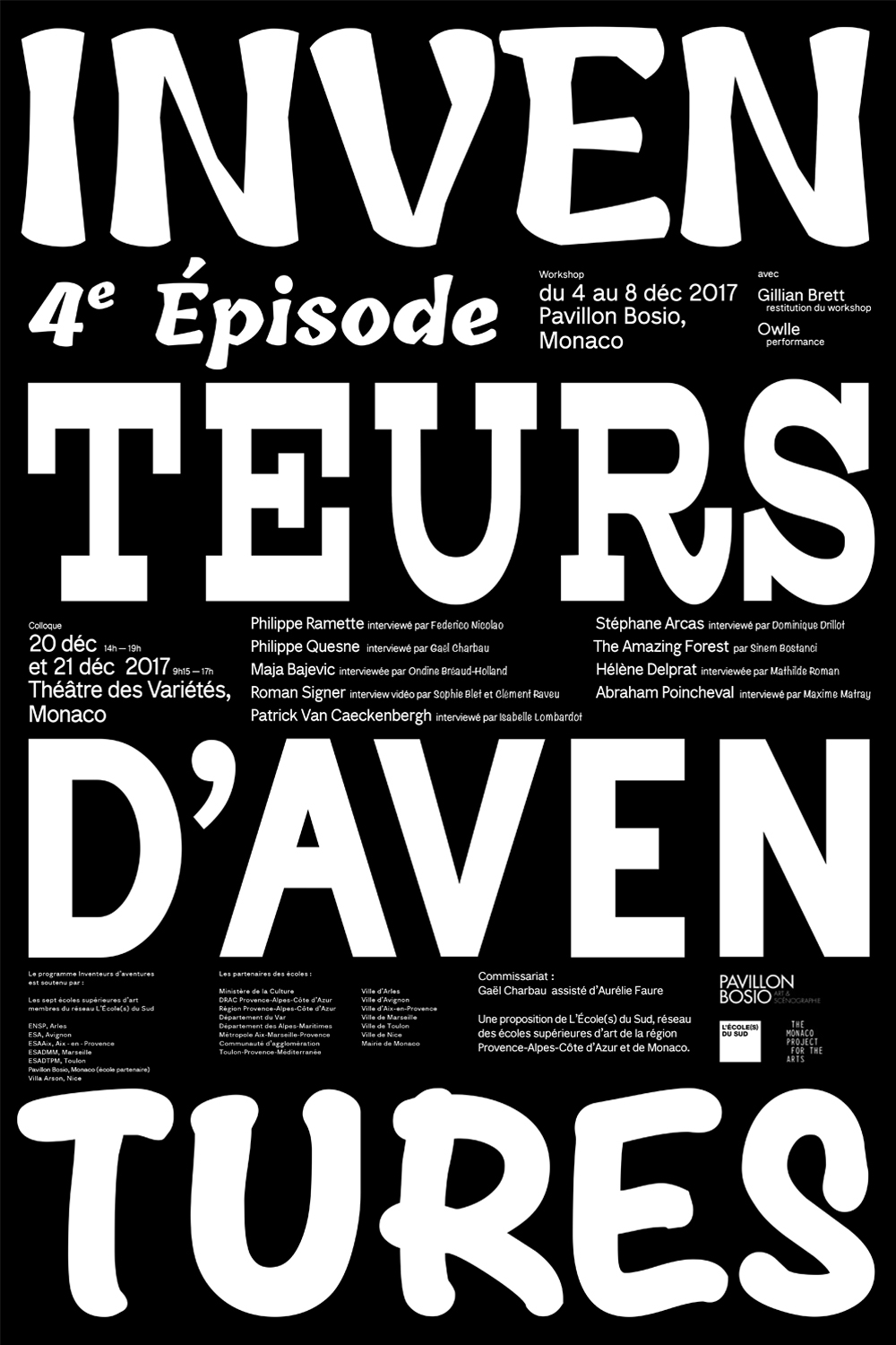 Ainsi que l’ensemble des personnes au sein des sept écoles supérieures d’art membres de L’École(s) du Sud qui ont participé à la réalisation d’Inventeurs d’Aventures, et les équipes de Friche la Belle de Mai.