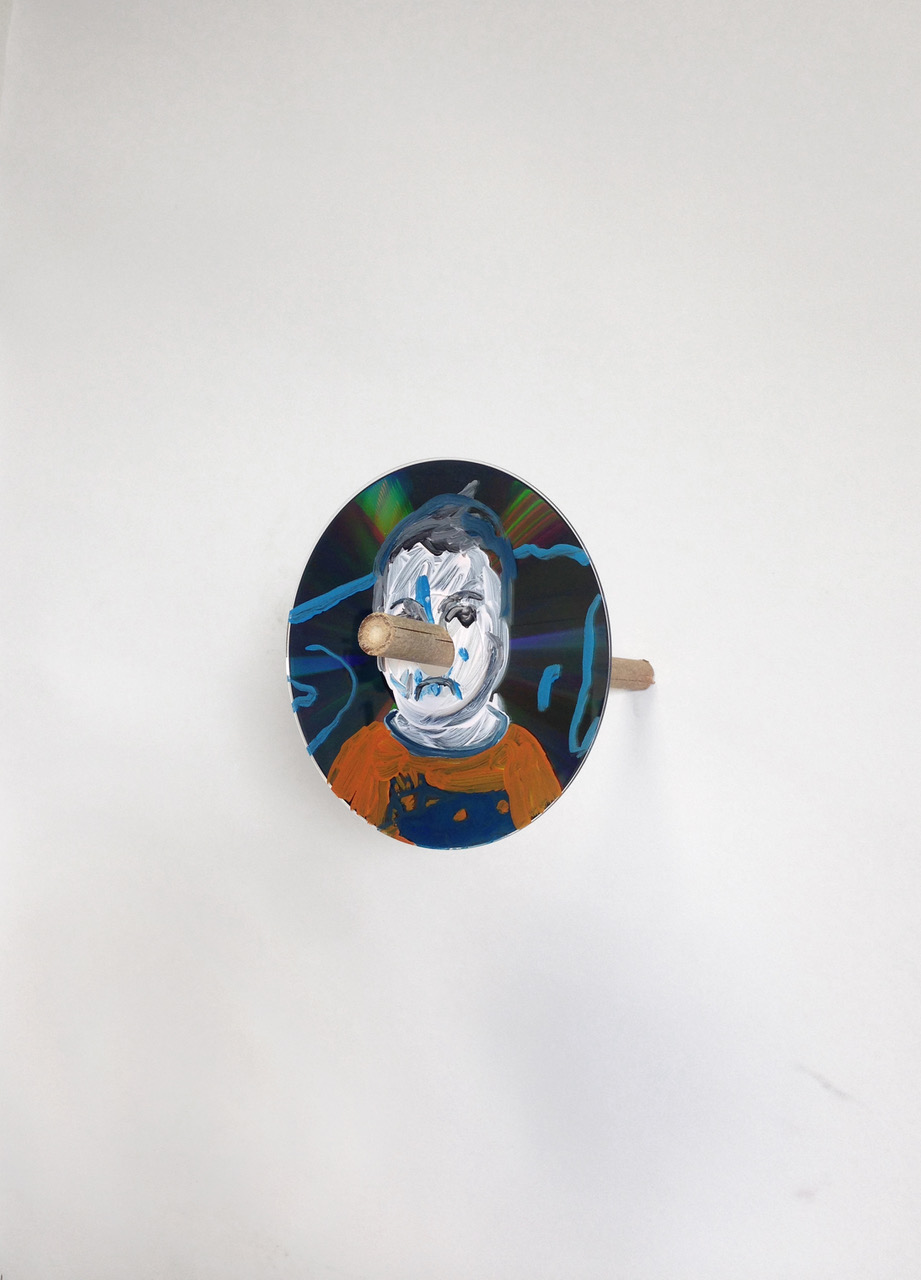 François-Xavier Guiberteau, Academy, acrylique sur CD, bambou, 12 x 12 x 19,5 cm, 2017,