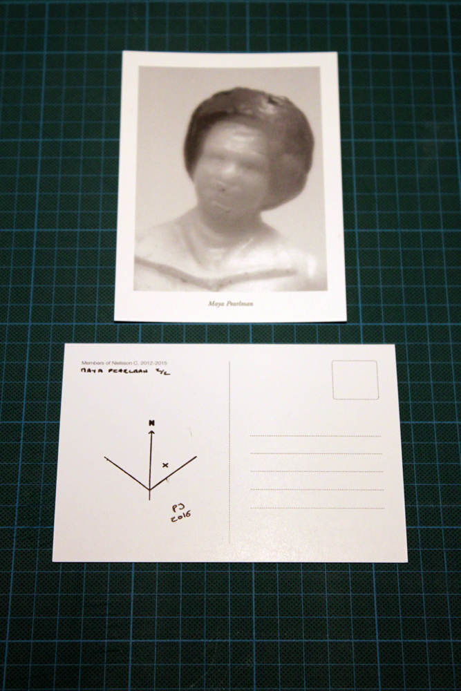 Jordan Pallages, Maya Pearlman, 10cm x 15cm, portrait photographie numérique N&B, sur carte postale, 2016,