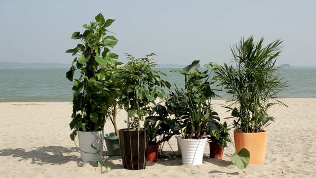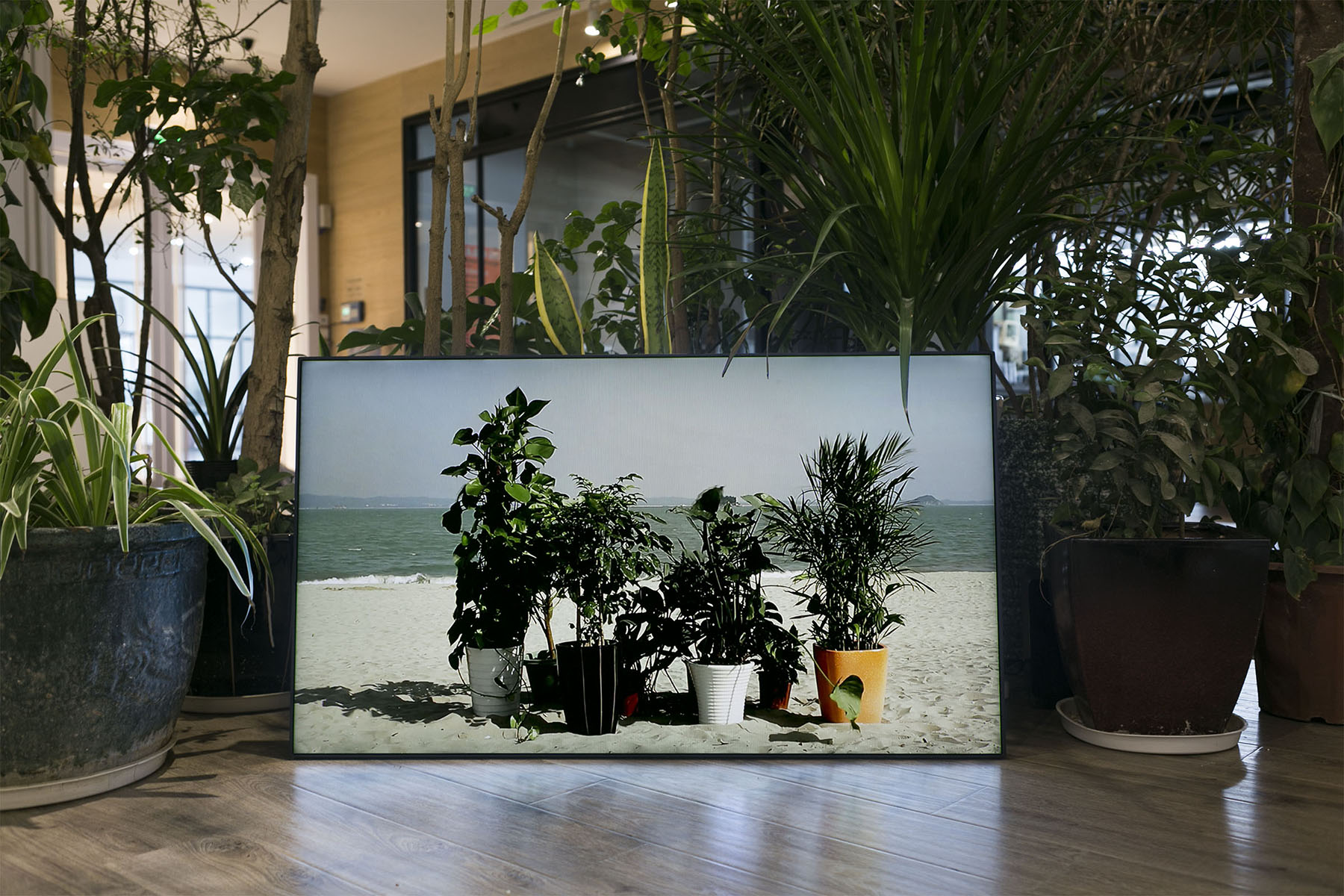 Marie Ouazzani & Nicolas Carrier, Sand Plants, vidéo HD sur moniteur, 6 min, plantes vertes, 2016,